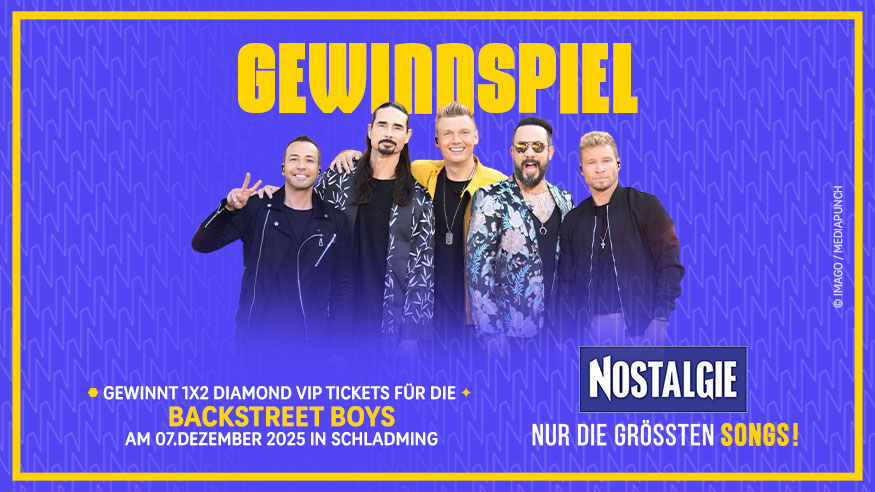 Und ihr könnt mit dabei sein! NOSTALGIE verlost 1×2 VIP-Diamond-Tickets für das Backstreet Boys-Konzert am 7. Dezember 2025 (exklusive Unterkunft & Anreise)!