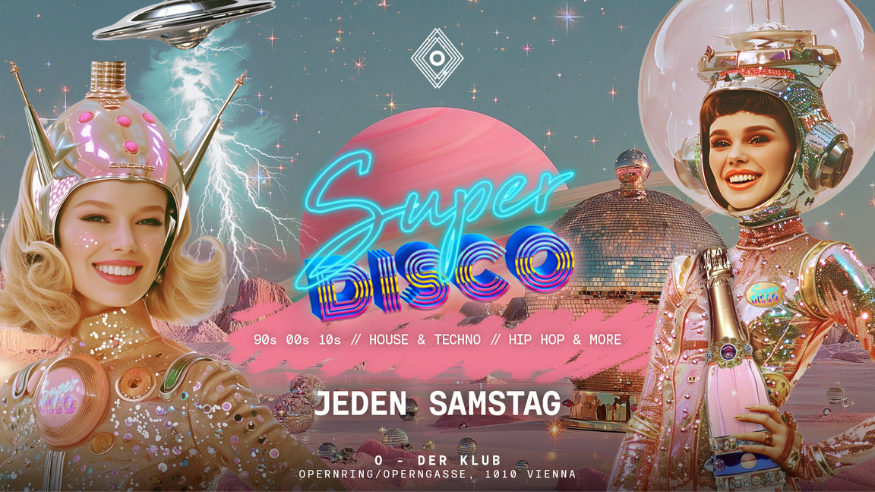 Willkommen in der schönsten Disco des Universums. Jeden Samstag öffnet sich das Portal zu einem Ort, wo Musik zu Materie wird und Emotionen durch den Raum schweben. Drei Floors. Unbekannte Frequenzen. Ein Raumschiff voll Glückseligkeit. Hier tanzt ihr durch Jahrzehnte, driftet durch elektronische Nebel und landet dort, wo Schwerkraft keine Rolle spielt. Super Disco à völlig losgelöst.
